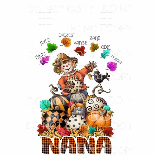 CUSTOM SCARECROW LEAVES Put info in the notes section as far as names go Custom Mama - Mimi - Mom - Nana other names in drop down menu if you don't see the name and you want put in the notes section Sublimation transfers