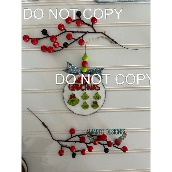 Please add your names in the notes section and who is the mom dad kids pets because the grinches are different sizes. If you have any questions please send me a message or text me thank you :) RIBBON MAY VARY