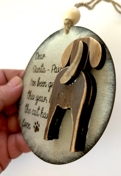 Hand Painted Laser Santa Paws Dog Ornament