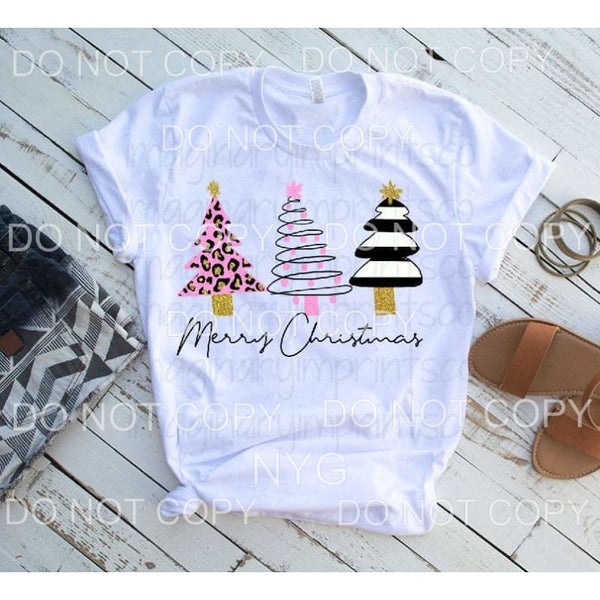 Merry Christmas Trees Pink Leopard Whimsical #128 Sublimation transfers